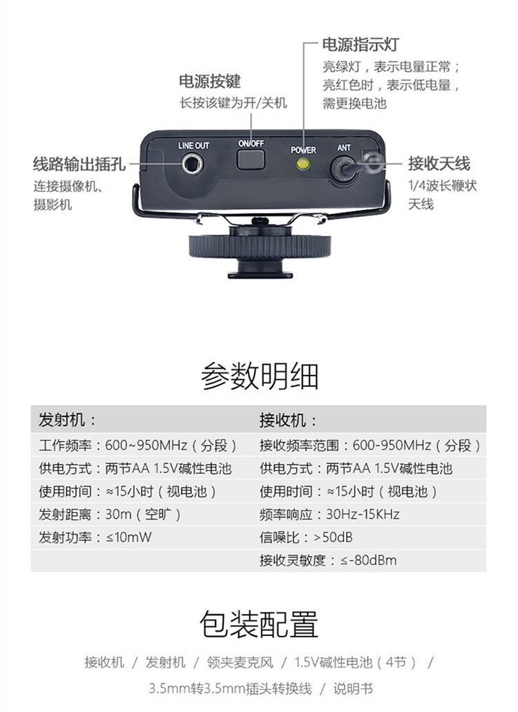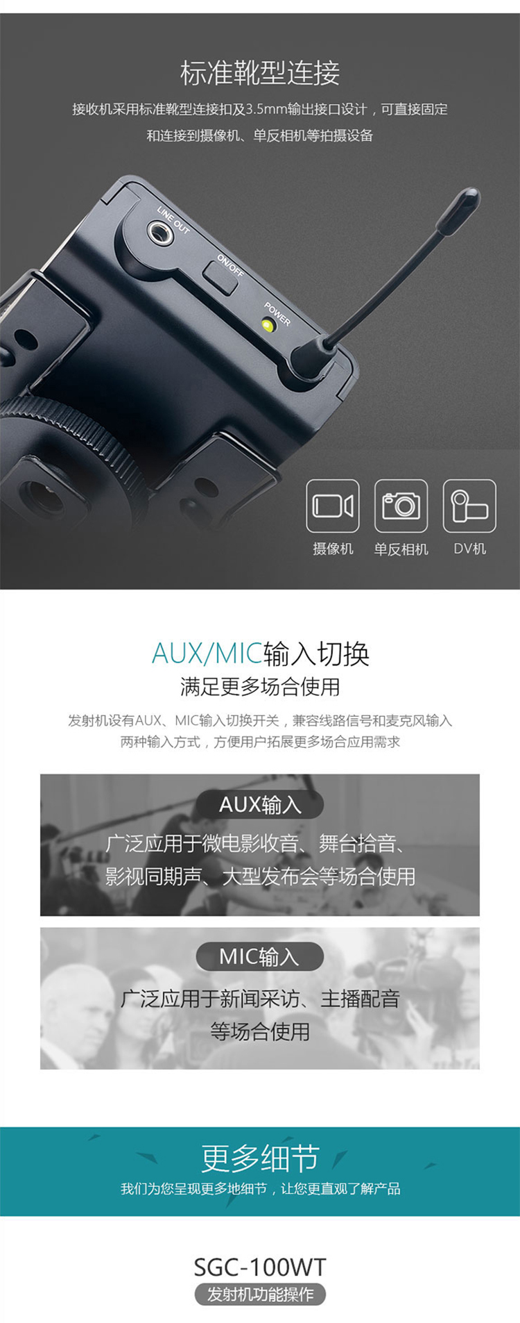 商品名称:得胜SGC-100W无线摄像机麦克风