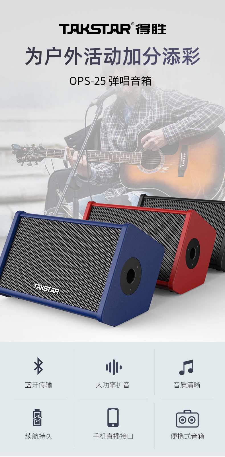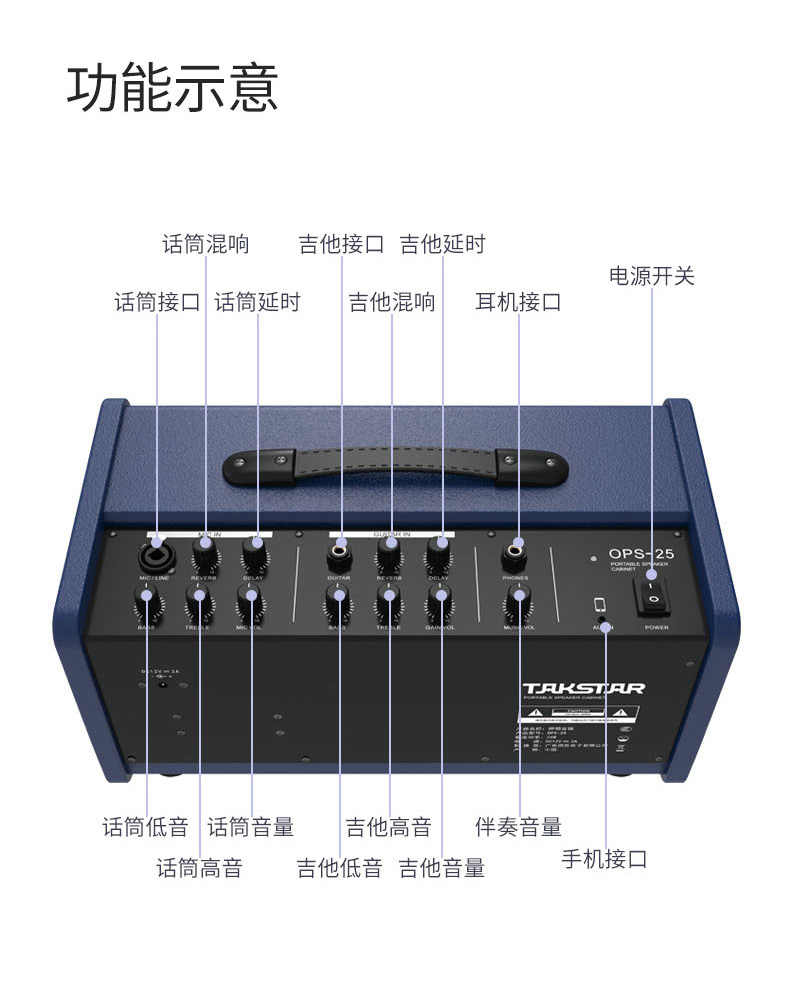 商品名称:OPS-25 便携式弹唱蓝牙音箱 吉他街头户外直播演出带效果便携音箱